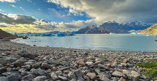 The next morning, we tried to get a reasonably early start out. I knew the next campsite would be a little small and wanted to get there in time to find the best wind break. We'd be on the water, and I expected the wind to pick up on the beach. The trail continued to follow the Viedma Glacier. We found ourselves trying to hurry and stay in front of the other parties but also needing to stop and photograph.